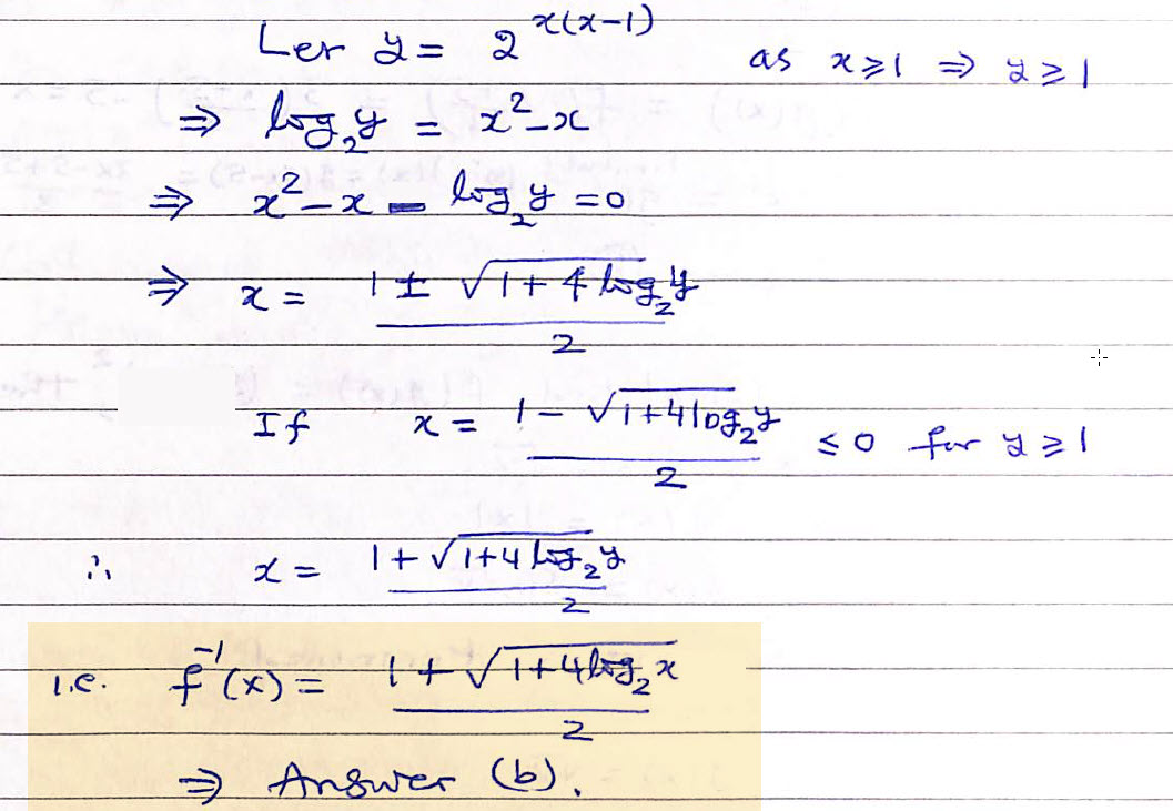 If the function f : [ 1,  ) → [ 1,  ) is defined by f (x) = 2x(x – 1) then