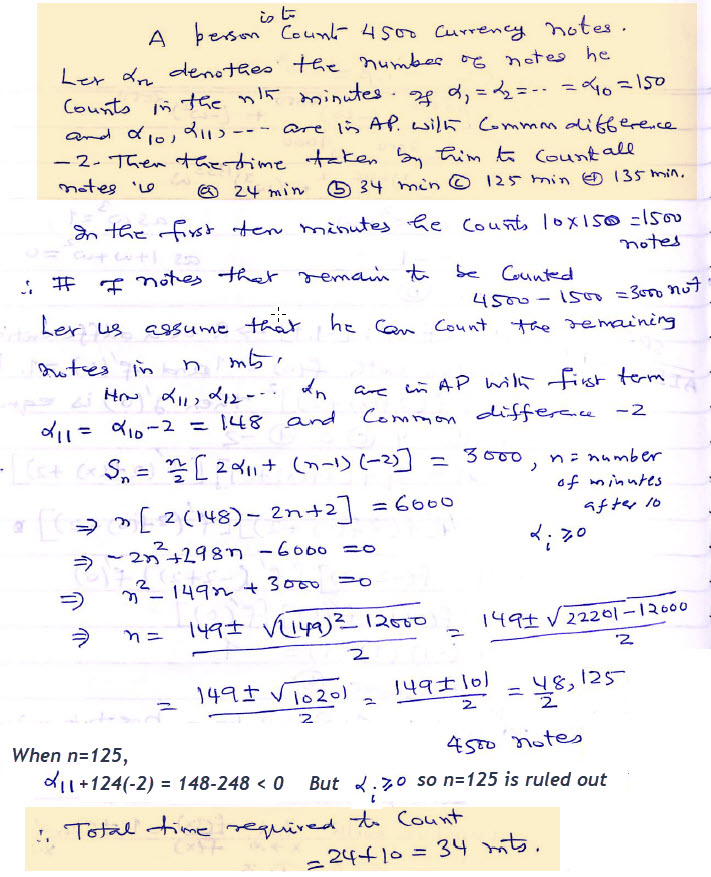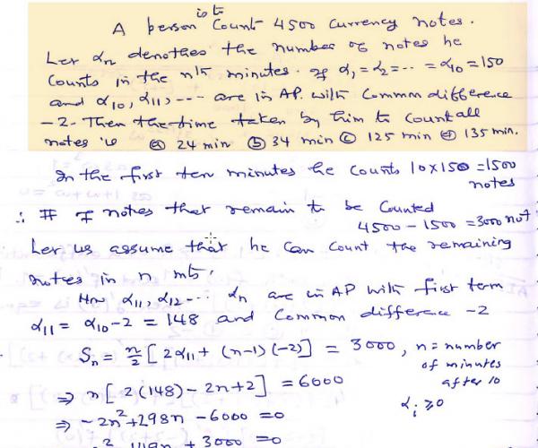 A person is to count 4500 currency notes. Let denotes the number of notes he counts in the  minutes. If  and   are in arithmetic progression with common difference –2 , then the time taken by him to count all notes is