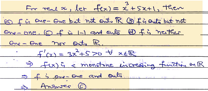 a) f is one – one but not onto ℝ