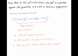 Show that if is a perfect square, the quantities a, b, c are in harmonic progression.