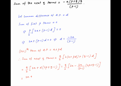 In an arithmetic progression of which a is the first term, if the sum of the first p terms = 0, show that the sum of the next q terms is equal to