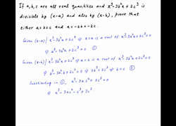 If a, b, c are all real quantities and is divisible by (x – a) and also by (x – b), prove that either a = b = c or a = – 2b = – 2c.