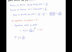 In England one person out of 46 is said to die every year and one out of 33 is born. If there were no emigration, in how many years would the population double itself at this rate.