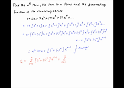 Find the generating function, the sum to n terms and the nth term of the recurring series