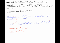 Show that the coefficient of in the expansion of is according as n is of the form 3m, 3m + 1, 3m + 2.