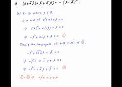Show that the roots of the equation z2 + αz + β = 0 where α, β are complex numbers are real if