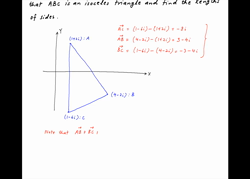 The position vectors of the point A, B and C of triangle ABC are given by = 1 + 2i, = 4 – 2i and = 1 – 6i respectively. Prove that ABC is an isosceles triangle and find the lengths of sides.