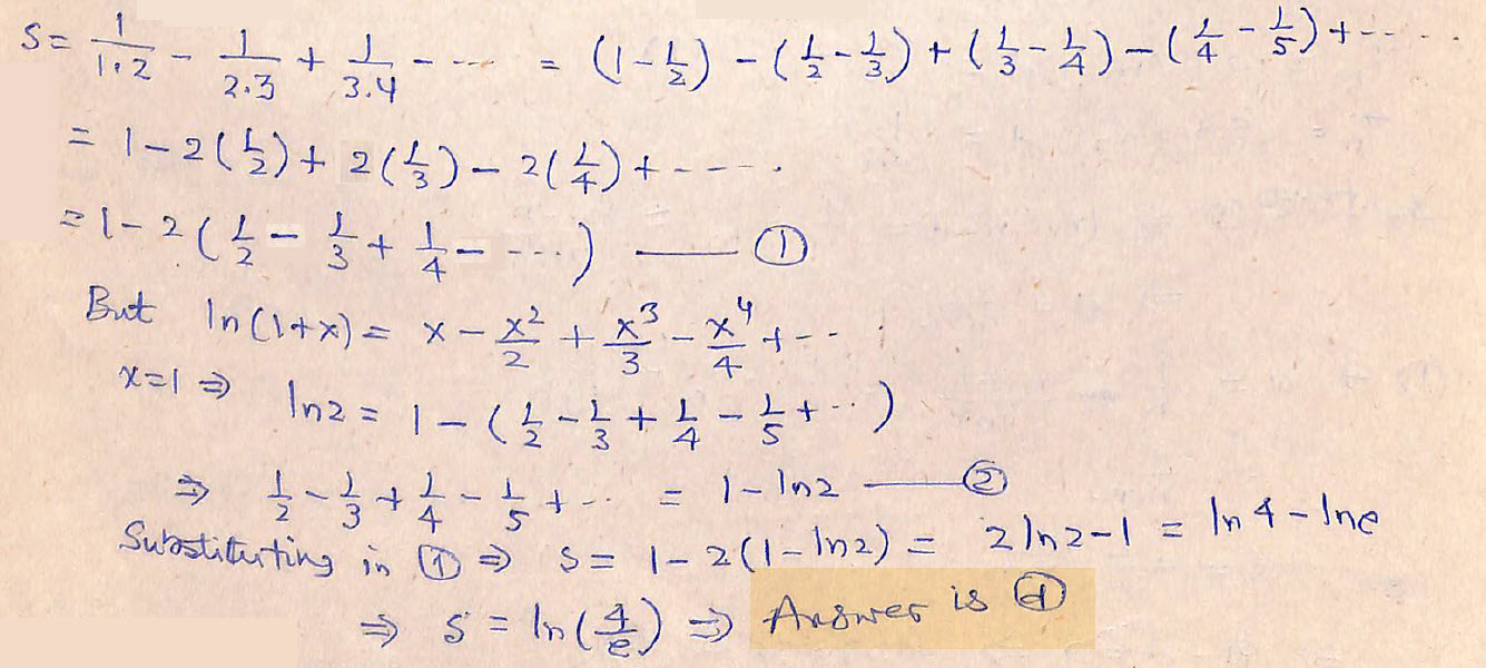 The sum of the series …… up to is equal to