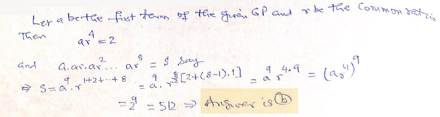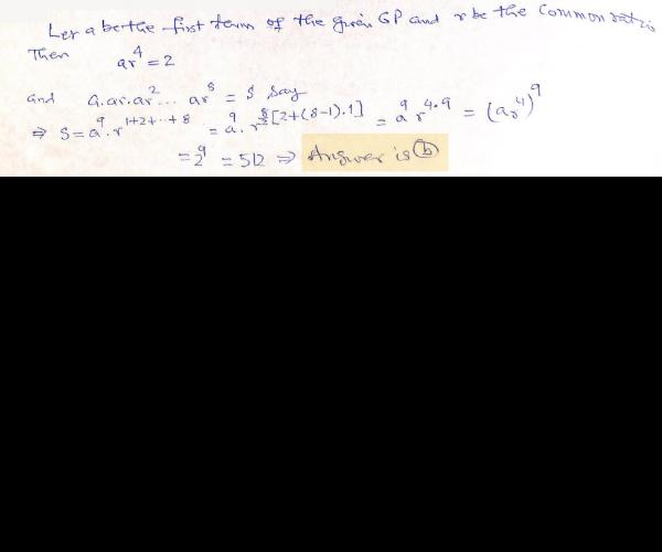 Fifth term of a geometric progression is 2 then the product of its 9 terms is
