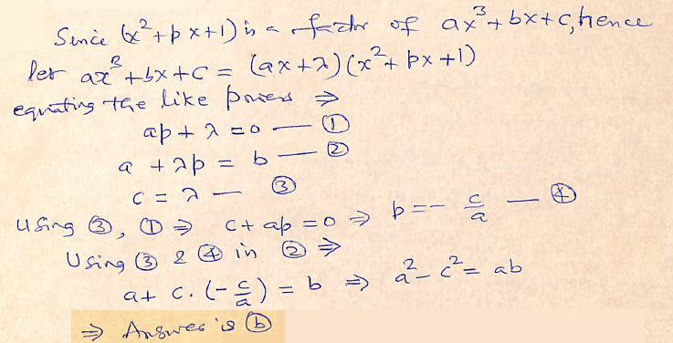 If x2 + px + 1 is a factor of the expression ax3 + bx + c then