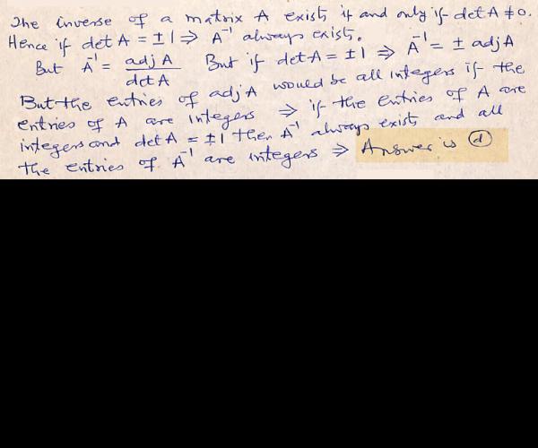 d) If det (A) = ± 1 then A-1 exists and all its entries are integers