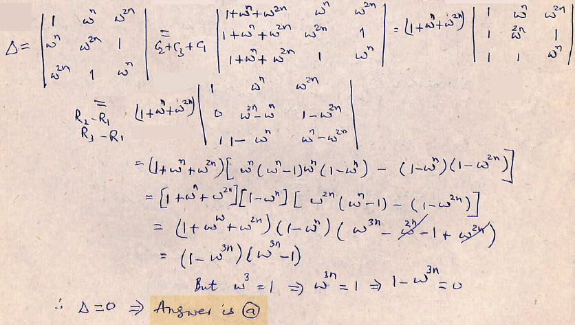If 1, ω, ω2 are cube roots of unity, then  is equal to