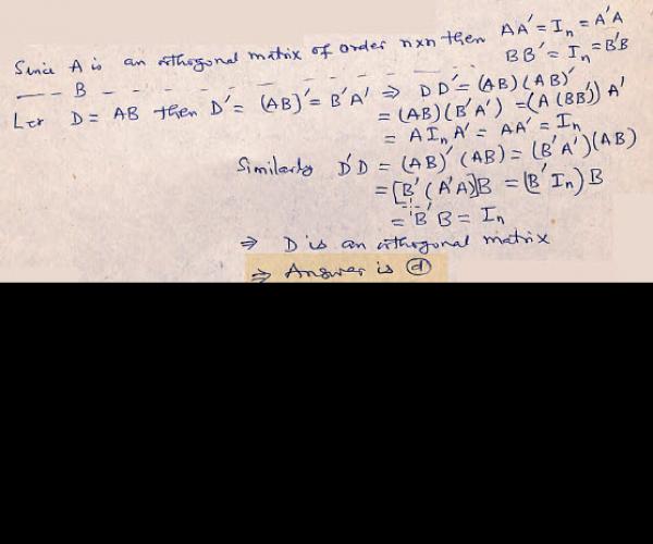 If A and B are orthogonal matrices of the same size then which one of the following is an orthogonal matrix