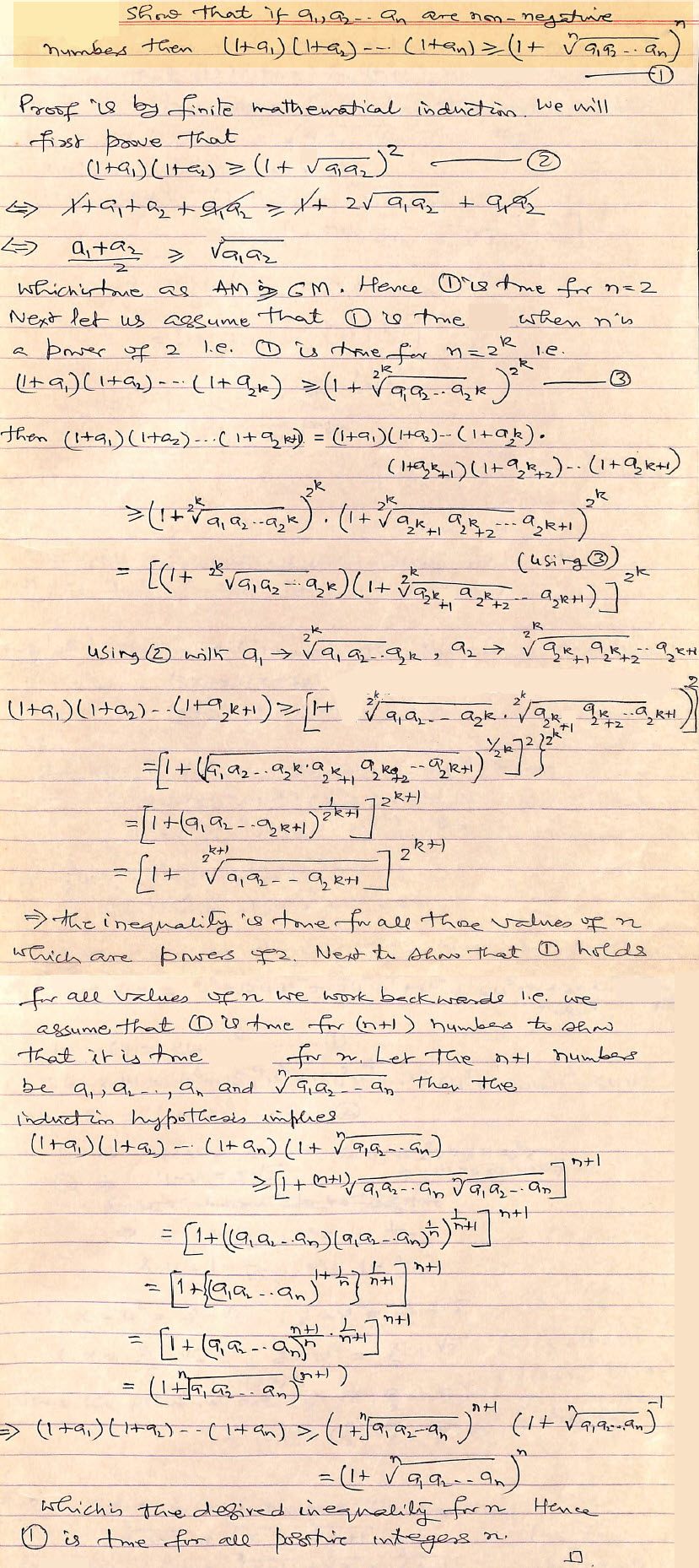 Show that if a1, a2 .  .  . an are non - negative numbers then
