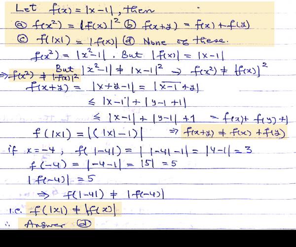 Let f(x) = |x – 1|, then
