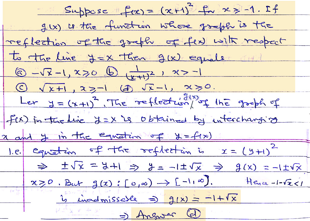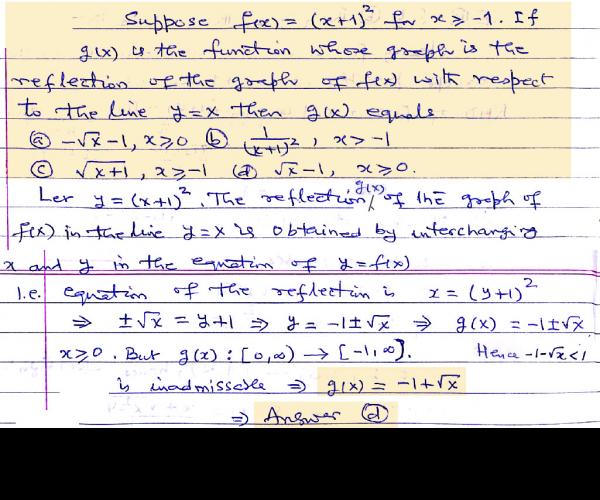 Suppose for x ≥ . If g(x) is the function whose graph is the reflection of f(x) with respect to the line y = x then g(x) equals