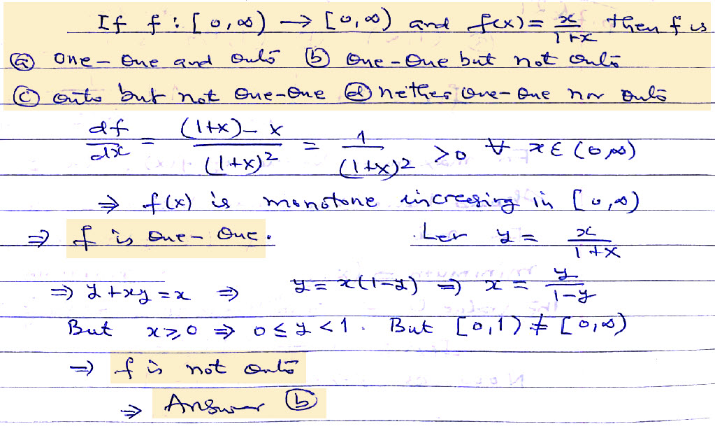 b) One to one but not onto
