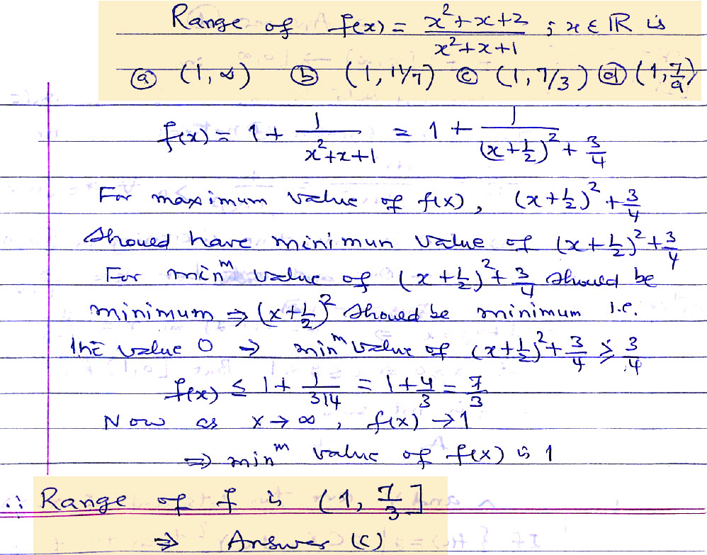 Subjective problems Let . Find all real values of x for which y takes real values.