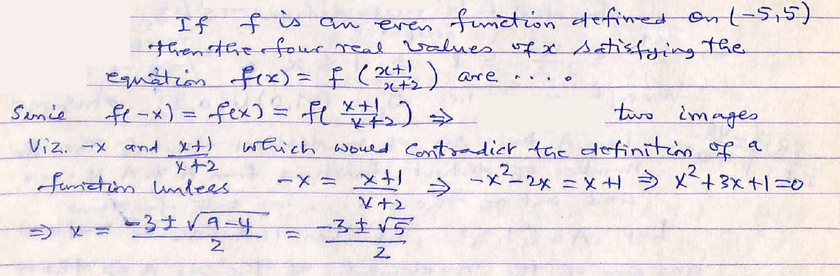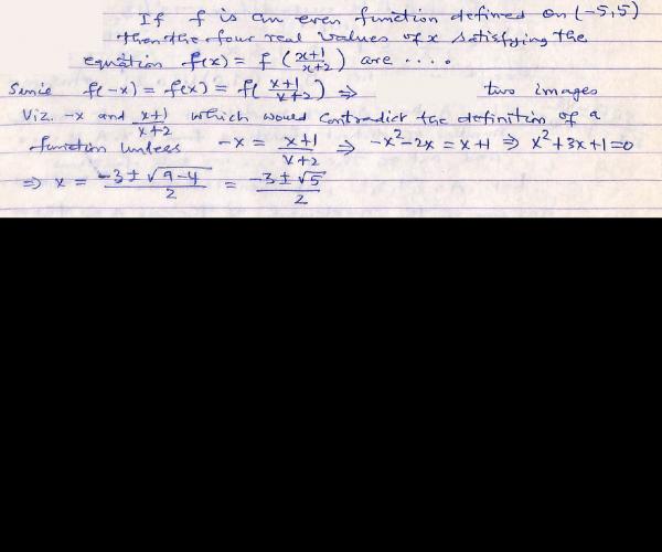 If f is an even function defined on (−5, 5) then the four real values of x satisfying the equation are