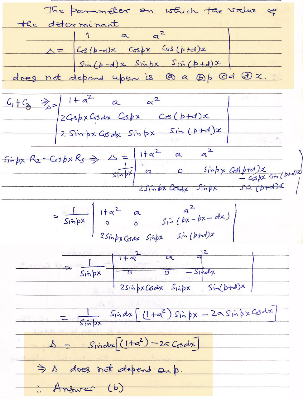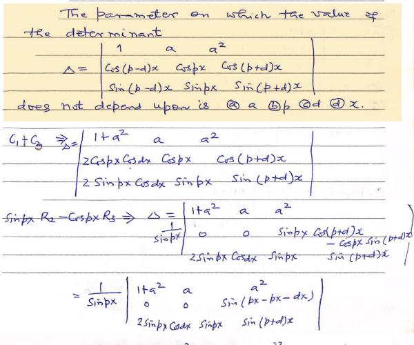 The parameter on which the value of the determinant Δ = does not depend upon is