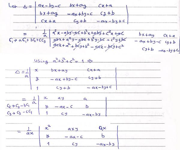 Let a, b, c be real numbers with a2 + b2 + c2 = 1. Show that the equation represents a straight line = 0