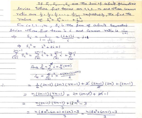 If S1, S2, .  .  .  .,Sn are the sums of infinite geometric series whose first terms are 1, 2, 3,   .  .  ., n and whose common ratios are  respectively, then find the value of