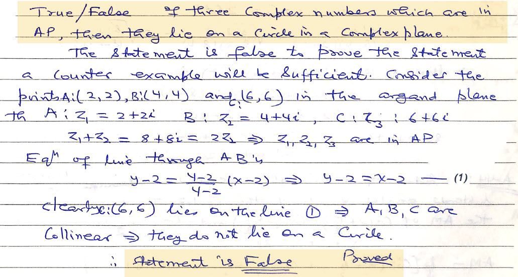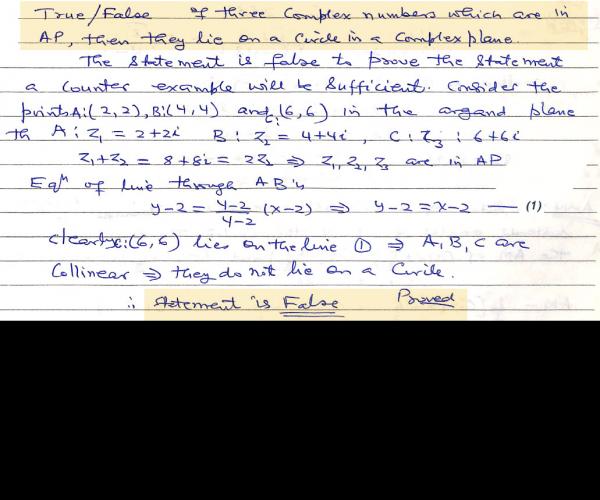 If three complex numbers are in Arithmetic Progression, then they lie on a circle in a complex plane.