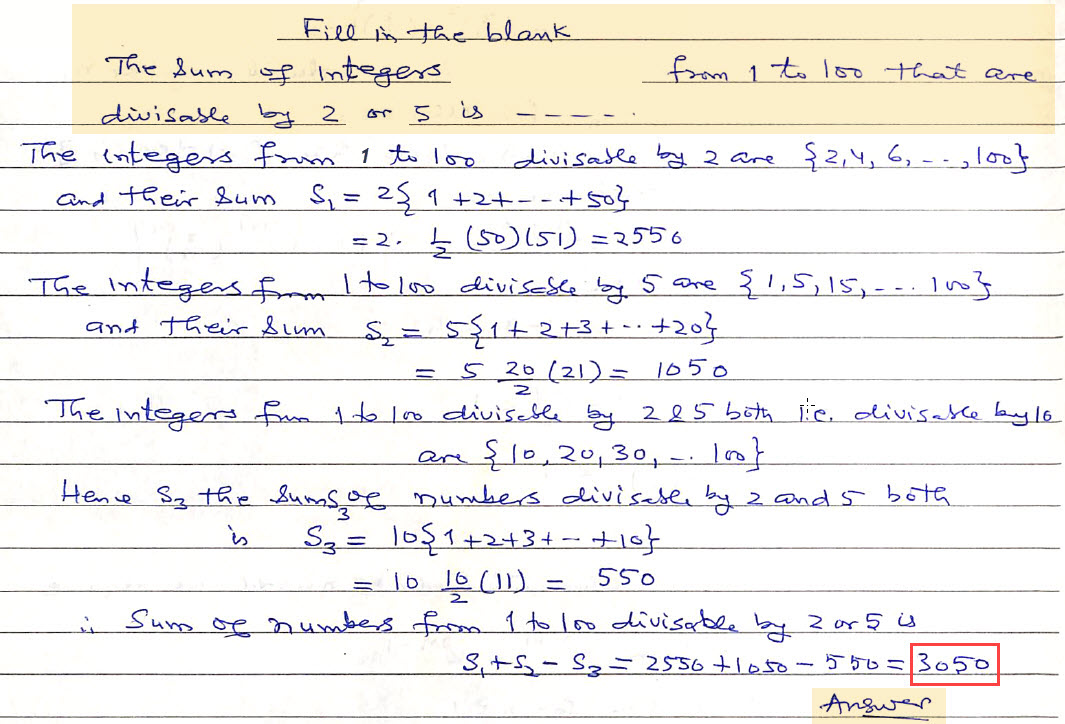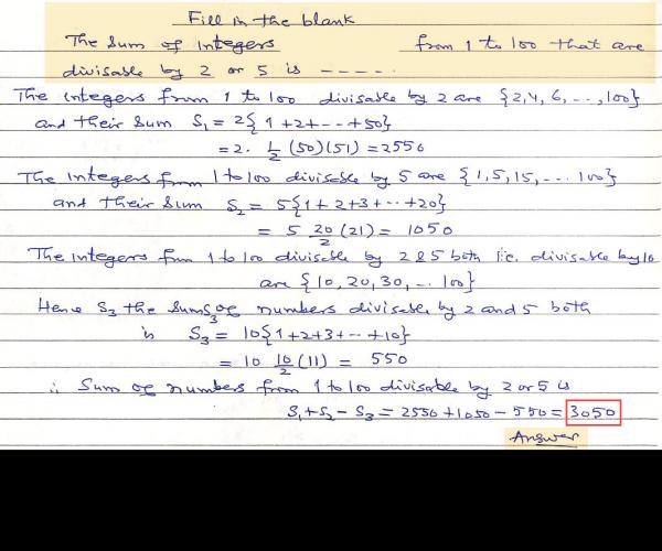 The sum of integers from 1 to 100 that are divisible by 2 or 5 is