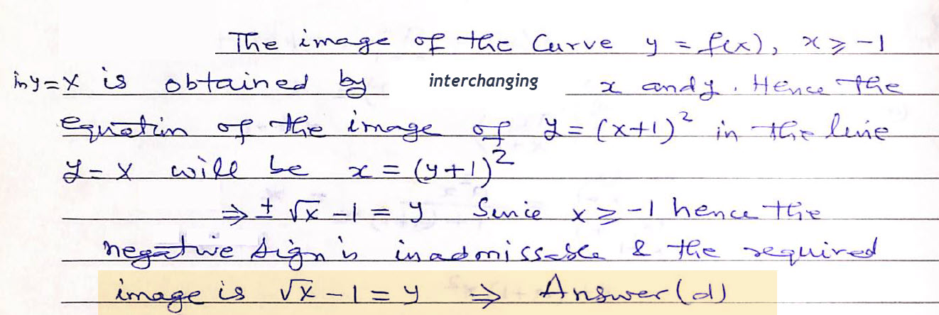 Suppose f (x) = (x + 1)2 for x ≥ . If g (x) is the function whose graph is the reflection of the graph of f (x) with respect to the line y = x then g (x) equals