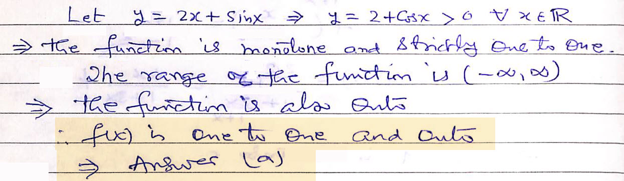 The function of f : R → R be defined by f (x) = 2x + sinx for x ε R . Then f is