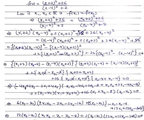 The function f (x) =  is not one to one.