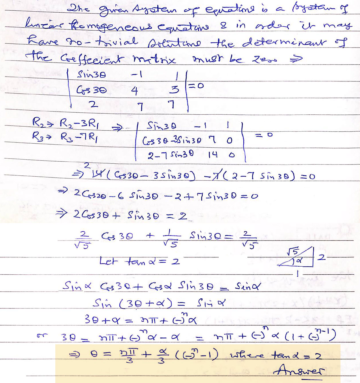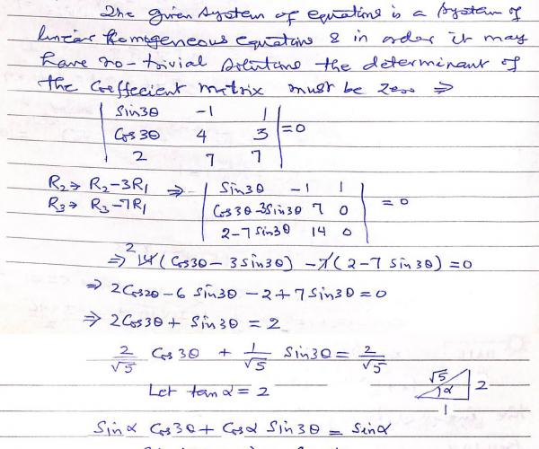 Find the value of θ for which the systems of equations have non-trivial solutions.