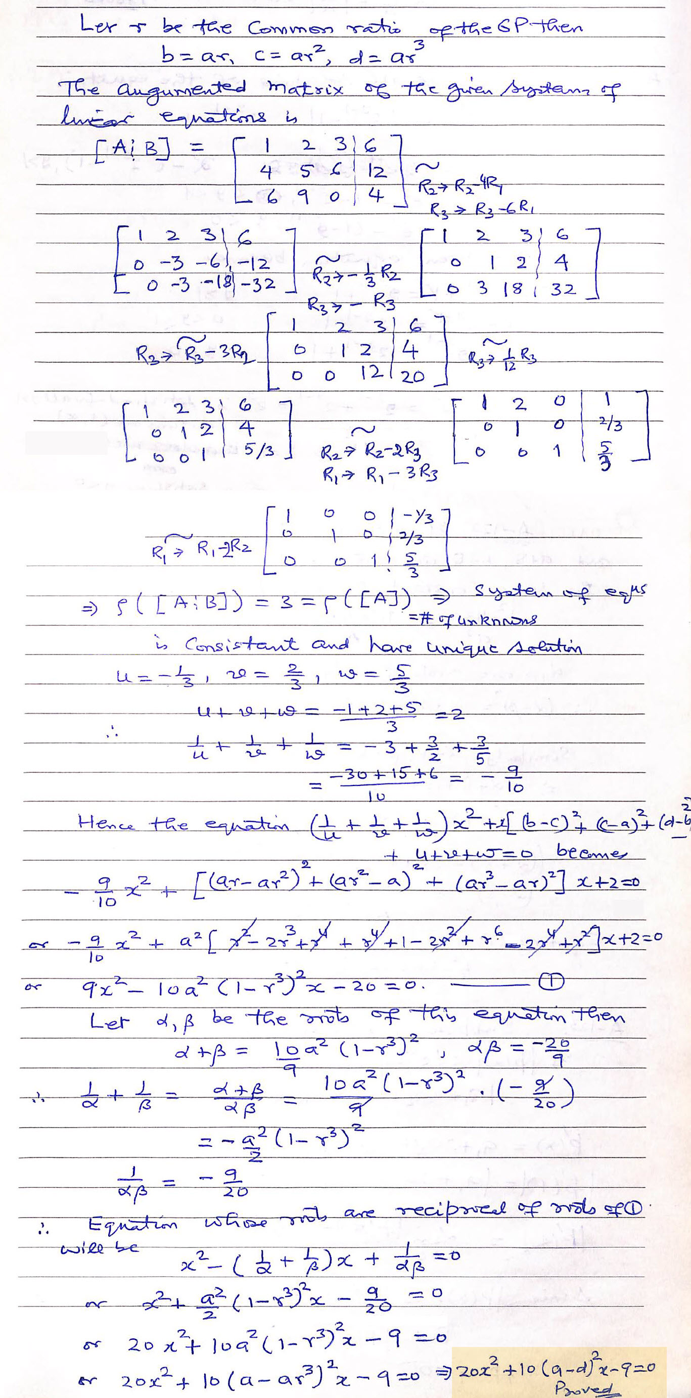 Let a, b, c, d be real numbers in geometric progression. If u, v, w satisfy the system of equations