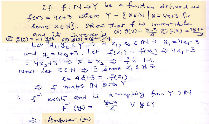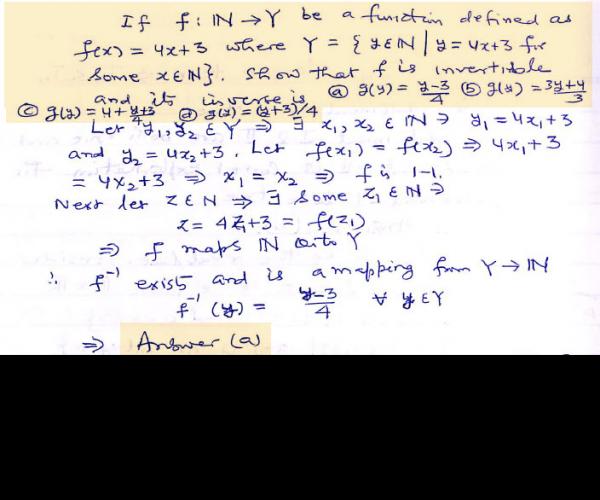 If  be a function defined as  where  . Show that f is invertible and its inverse is