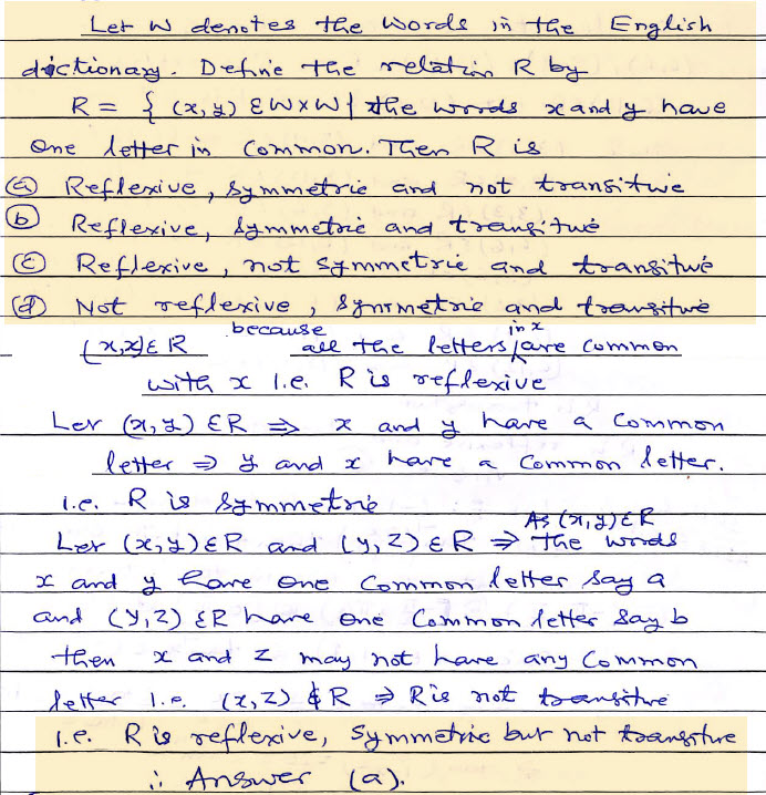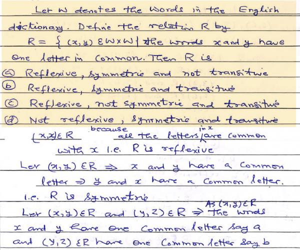 Let W denote the words in the English dictionary. Define the relation R by  the words x and y have one letter in common}. Then R is