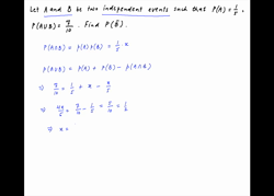 A and B are independent events. The probability that both A and B occur is and probability that neither of them occur is . Find the probability of the occurrence of A.