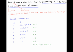 A and B throw a dice each. The probability that A’s throw is not greater than B’s throw is
