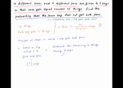 10 different books and 2 different pens are given to 3 boys so that each gets equal number of things. The probability that the same boy does not receive both the pens is