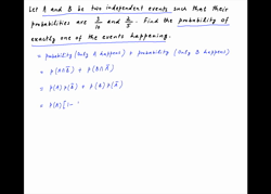 Let A and B be two independent events such that their probabilities are . The probability of exactly one of the events happening is
