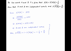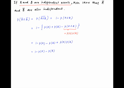 If the independent events A and B are such that 0 < P (A) < 1 and 0 < P (B) < 1 then A and are independent