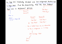 2n boys are randomly divided into two subgroups containing n boys each. The probability that the two tallest boys are in different groups is
