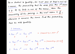 For a student to qualify, he must pass at least two out of three exams. The probability that he will pass the first exam is p. If he fails in one of the exams, then the probability of his passing in the next exam is ., otherwise it remains the same. Then the probability that he will qualify is
