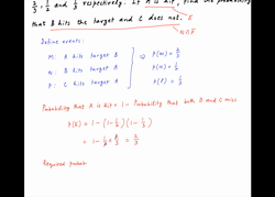 A is targeting to hit B, B and C are targeting to hit A. Probability of hitting the target by A, B and C are respectively. If A is hit then the probability that B hits the target and C does not is